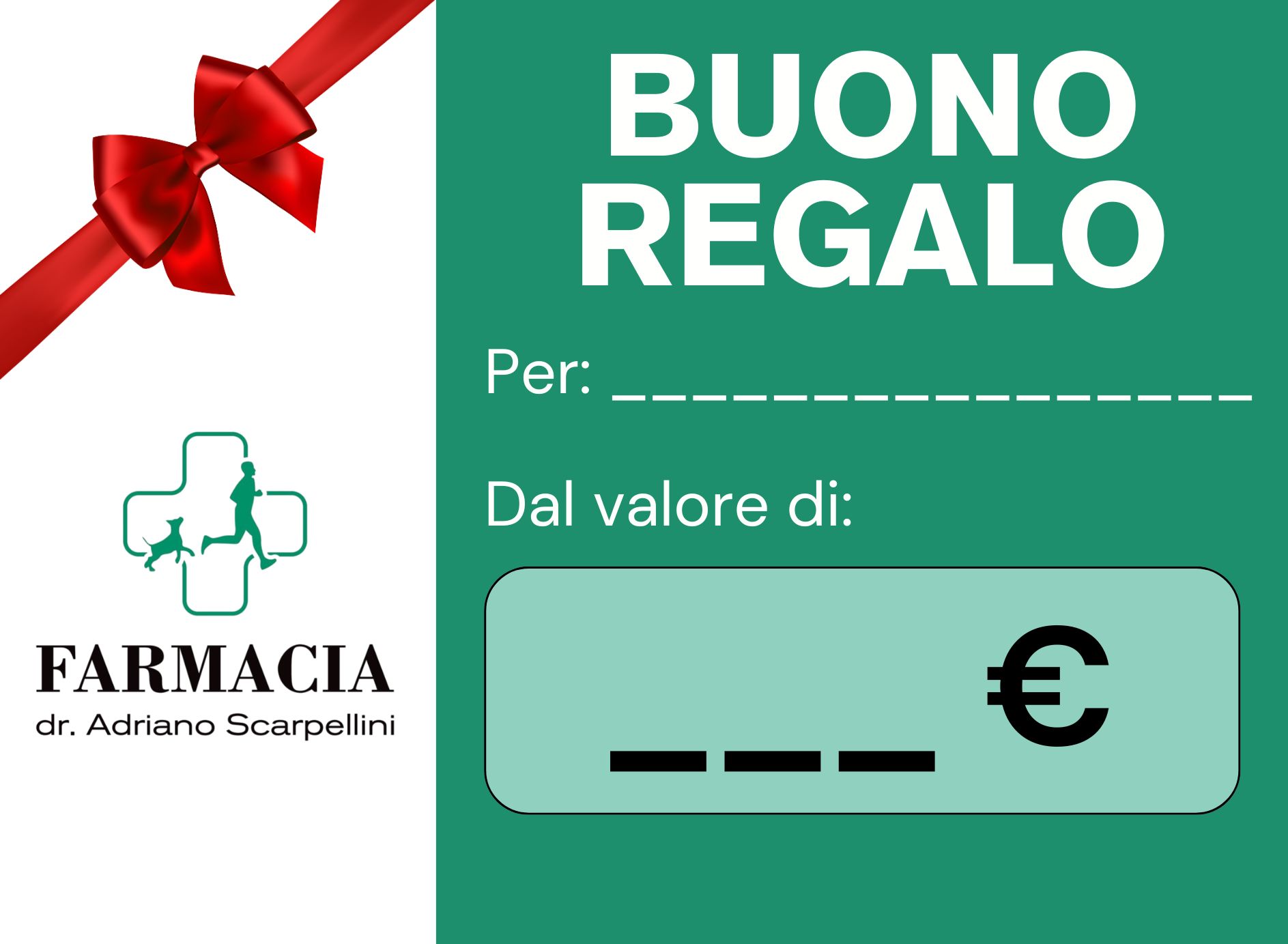 Con il buono regalo della nostra farmacia, offri la libertà di scegliere tra tanti prodotti per la salute e la cura di sé. Scegli l’importo che preferisci o decidi tu il valore del buono.